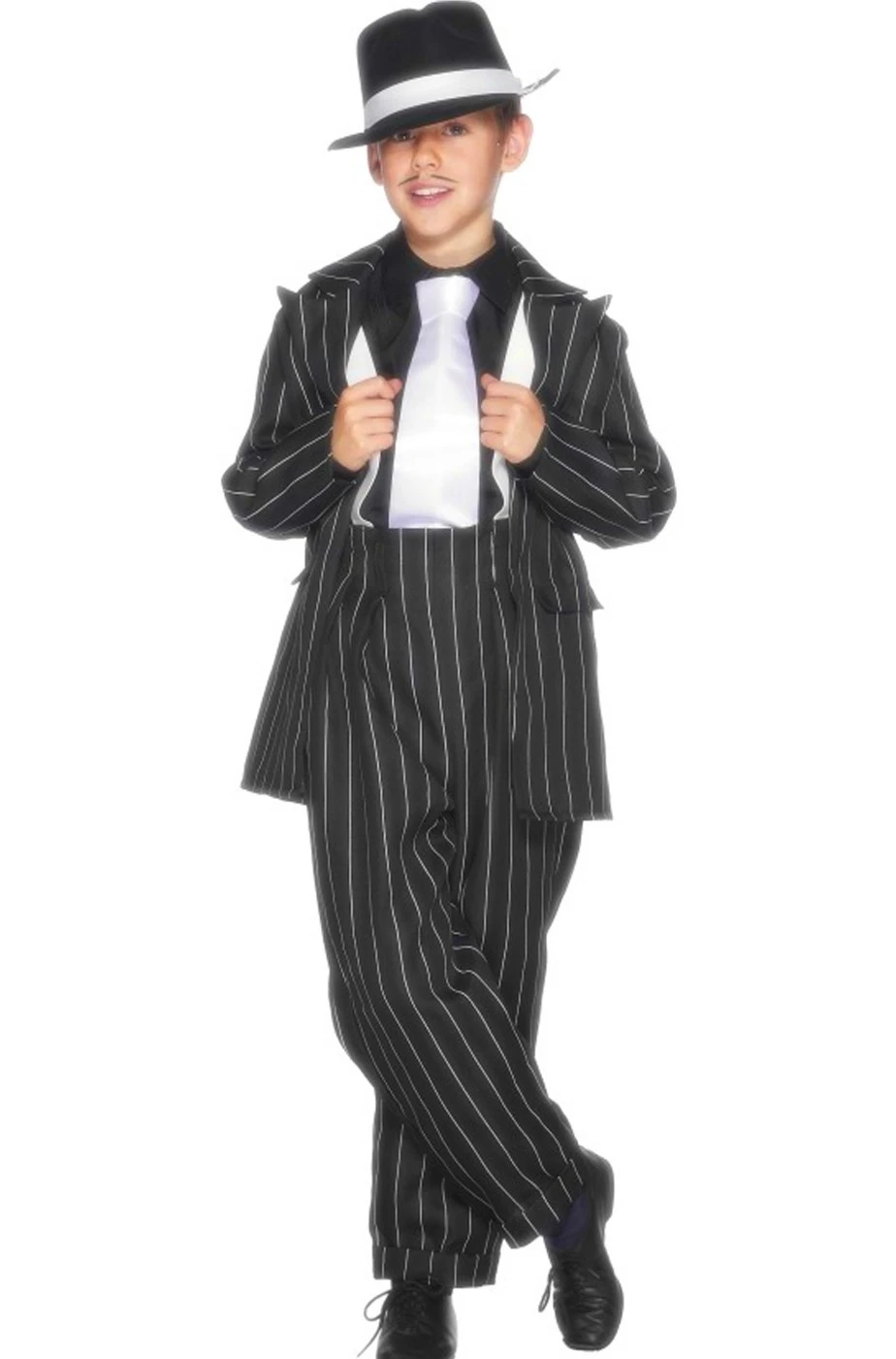 Trasforma il tuo bambino in un vero criminale della Chicago anni 20 ai tempi del proibizionismo con questo vestito di carnevale da gangster Al Capone gessato grigio che include la giacca con le bretelle ed il pantalone. Completalo con gli accessori e realizza un vero padrino alla Mario Puzo per un carnevale divertente ed originale.
