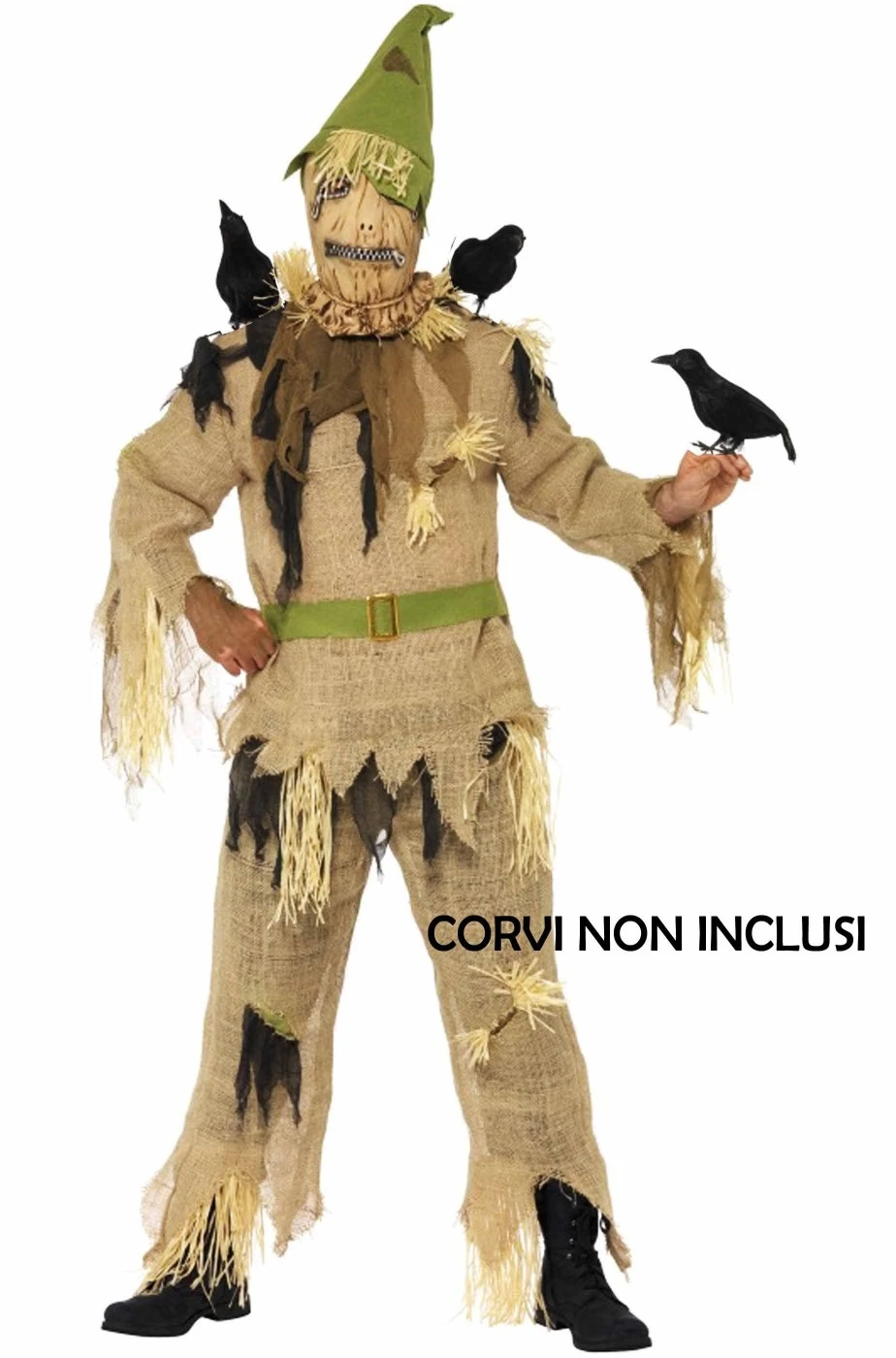 Trasformati nell’originale Scarecrow del Mago di Oz ma anche di Batman ed e’ molto completo: include infatti la maglia con la cintura unita in un unico pezzo, i pantaloni, la maschera ed il cappello. Musical, film, cartone. Questo vestito da Scarecrow copre davvero mille occasioni. Simpatico anche come personaggio per intrattenere i bambini ad una inaugurazione di un locale, puoi fare l’abbinamento in coppia o in gruppo. Gli uccelli mostrati in fotografia non sono inclusi.