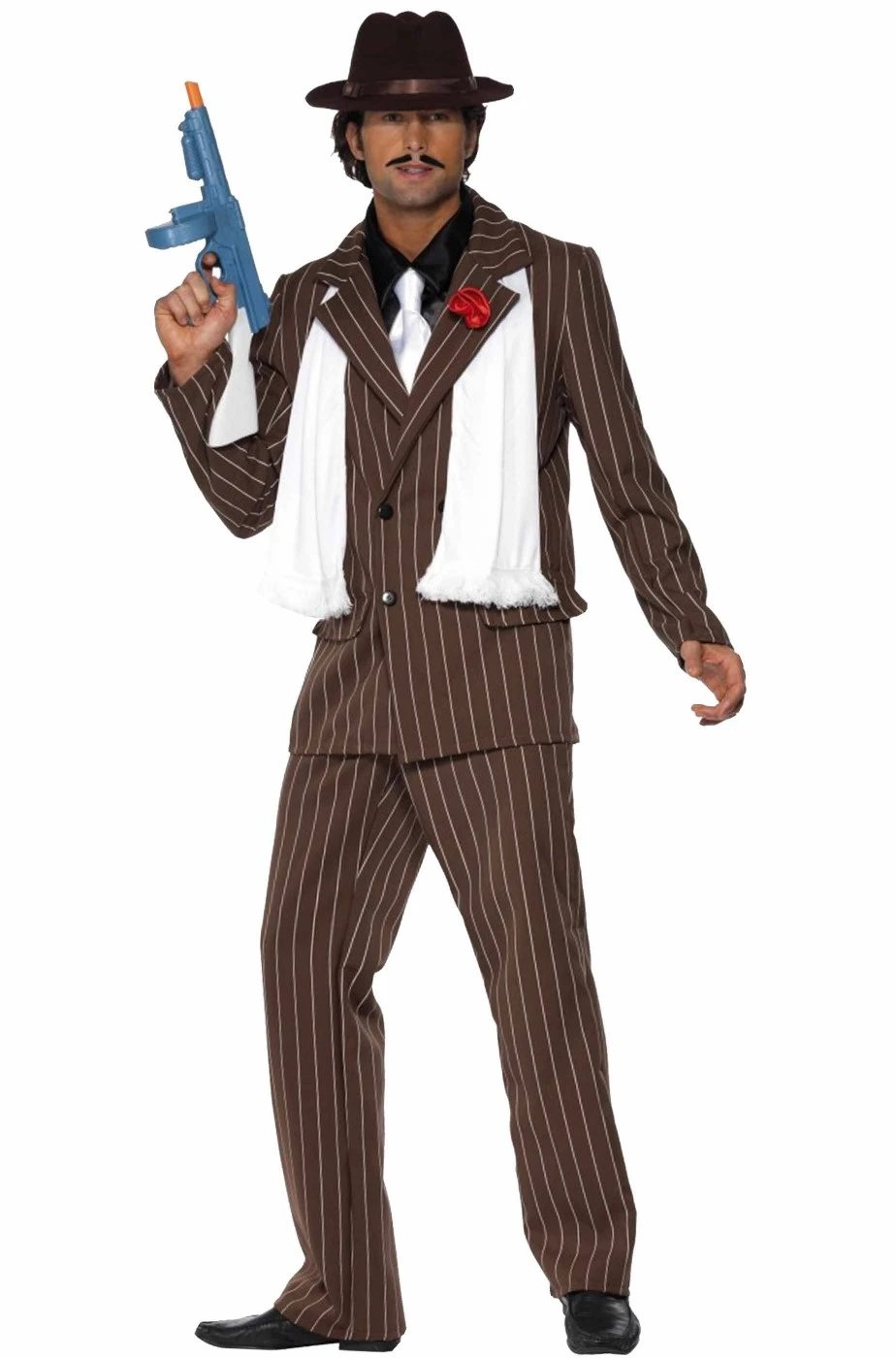 Vestito di carnevale da gangster alla Grande Gatbsy in stoffa resistente con pantalone con elastico in vita per adattarsi a molte taglie.