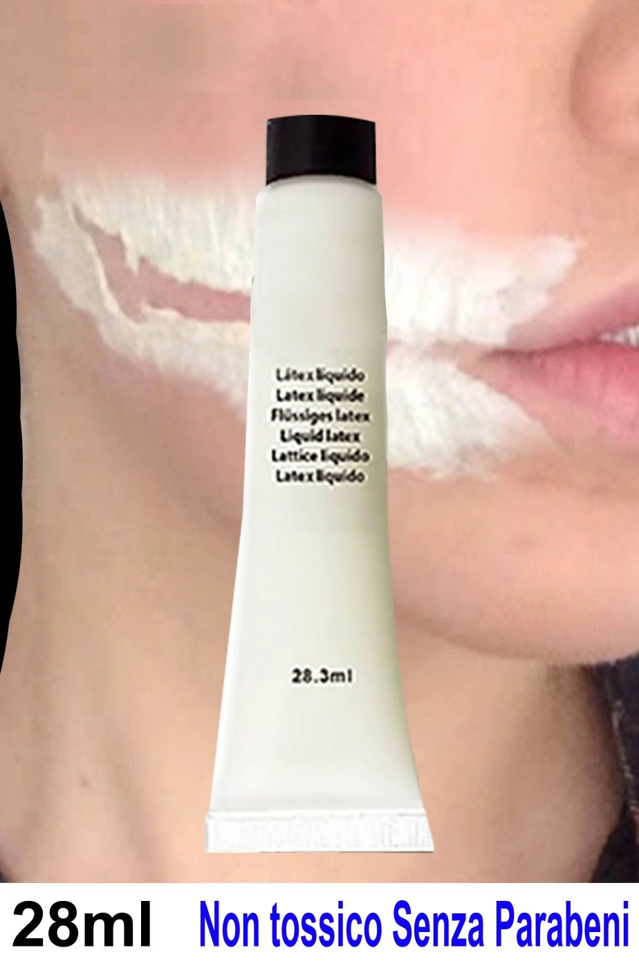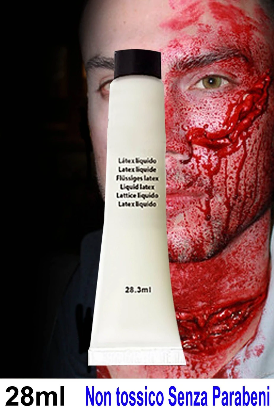 Confezione da 28 grammi. Per creare ferite horror, per fissare le mascherine di prostetica, per incollare barbe, baffi, per creare effetti speciali horror sulla pelle. Cerca la pagina facebook de La Stranacasa dedicata al trucco, makeup, horror per suggerimenti, tutorial ecc. sull’uso del latex liquido. ATTENZIONE: Lattice liquido. Per elaborare la tua ferita Attenzione 28 mg a base di ammoniaca ATTENZIONE: PRIMA DI APPLICARE EFFETTUARE SEMPRE UNA PROVA CON UNA GOCCIA SULL’INTERNO DEL GOMITO ED ATTENDERE ALCUNI MINUTI PER VERIFICARE EVENTUALI ALLERGIE AL LATTICE. In caso di arrossamenti rimuovere immediatamente TENERE LONTANO DAGLI OCCHI