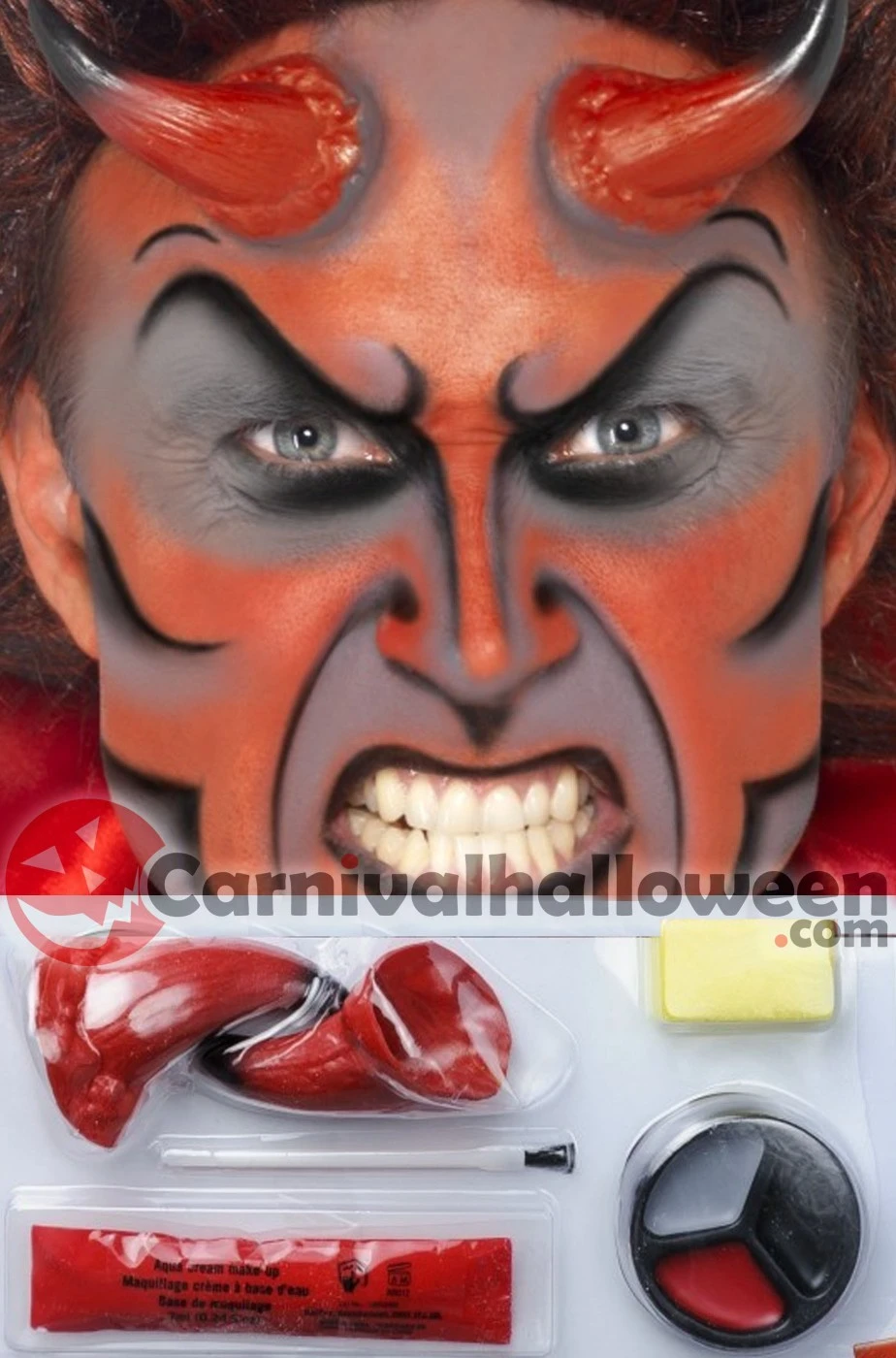 Completissimo trucco Halloween da diavolo in kit per creare un perfetto makeup sia per un demone che per la diavolessa piu’ sexy e spaventosa che ci sia.
