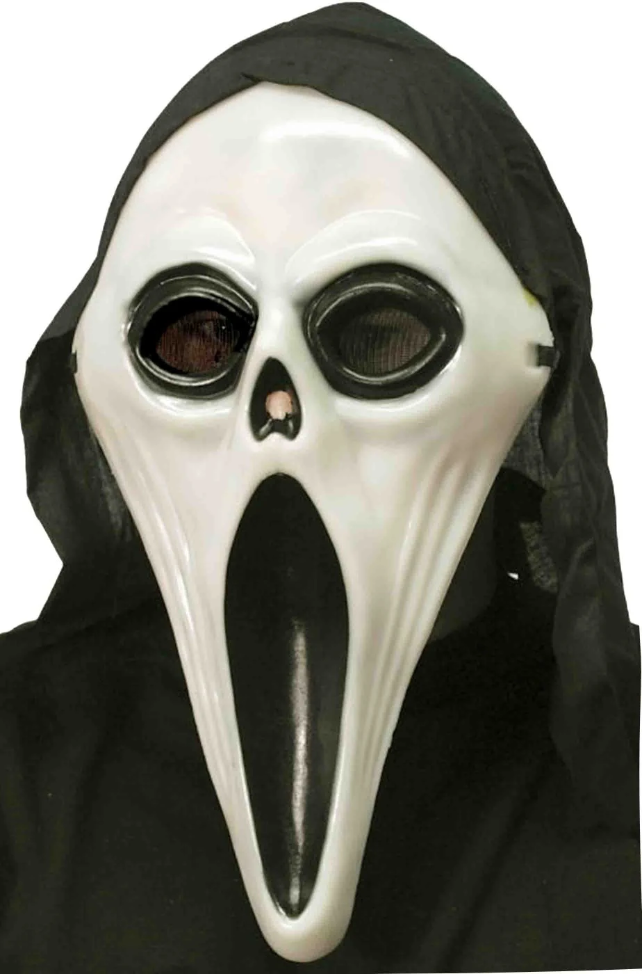Questa maschera di halloween da fantasma urlante può essere facilmente completata da una semplice felpa nera con cappuccio e ti consentira’ di realizzare il tuo vestito di halloween fai da te in quattro e quattr’otto.