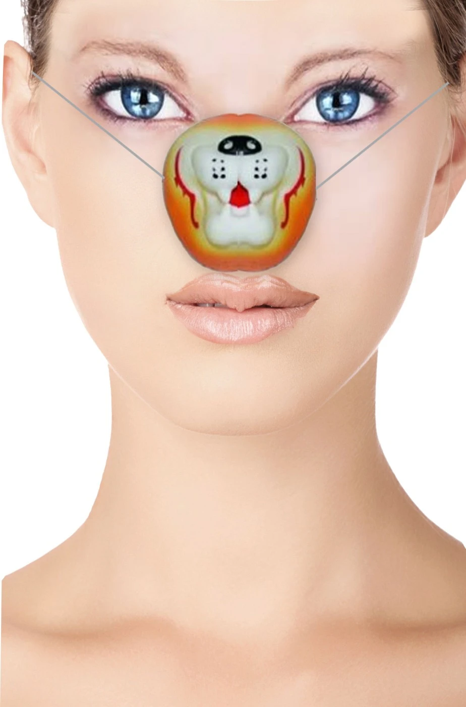 Naso da leone o da tigre con bocca con le zanne. Si indossa con elastico.