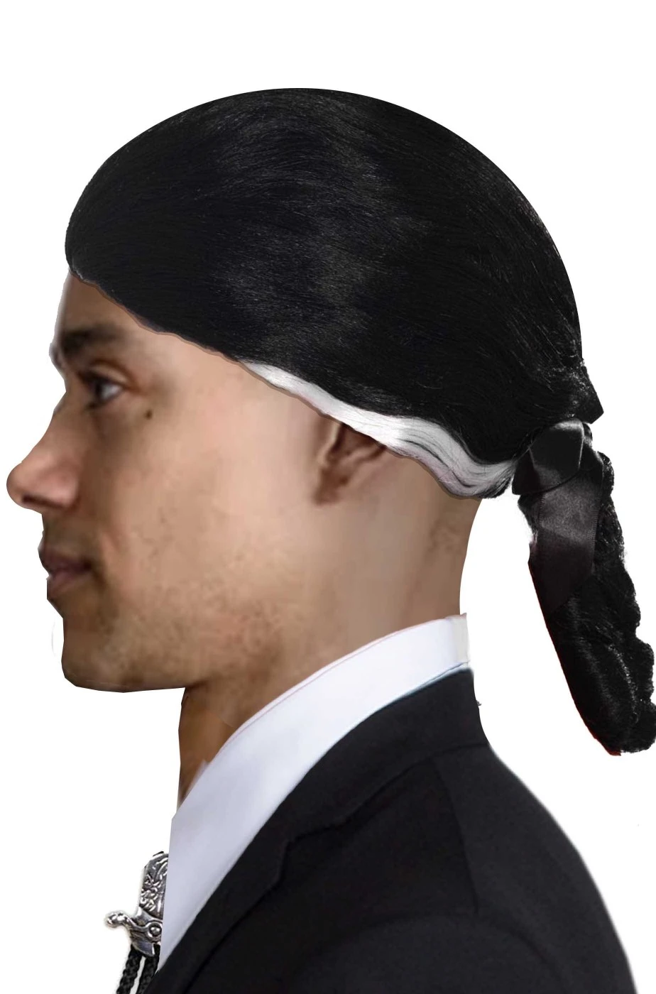 Altrimenti questa e’ una perfetta parrucca di Halloween nera con le meches bianche per realizzare un vampiro vittoriano inquietante e misterioso come quelli del film Intervista col Vampiro con Tom Cruise e Brad Pitt.