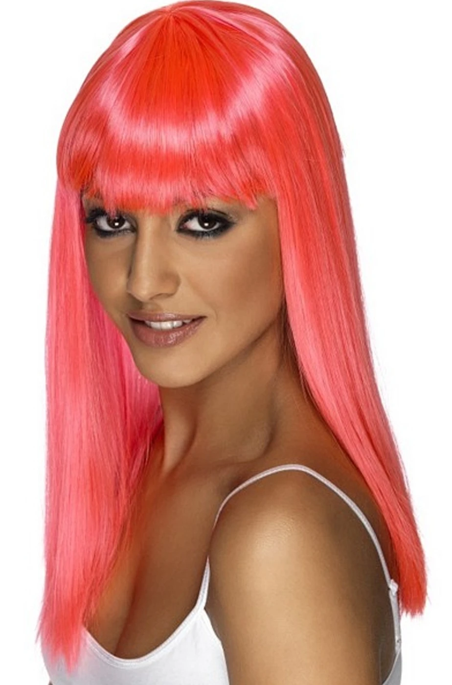 Smiffys Parrucca Rosa Fucsia Liscia Lunga Con Frangia Neon Fluo Glamourama