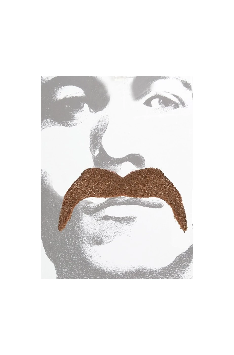 Baffi marroni a ferro di cavallo con biadesivo da cowboys, da messicani, da gangster o qualsiasi occasione in cui un bel baffone serva a travestirsi.