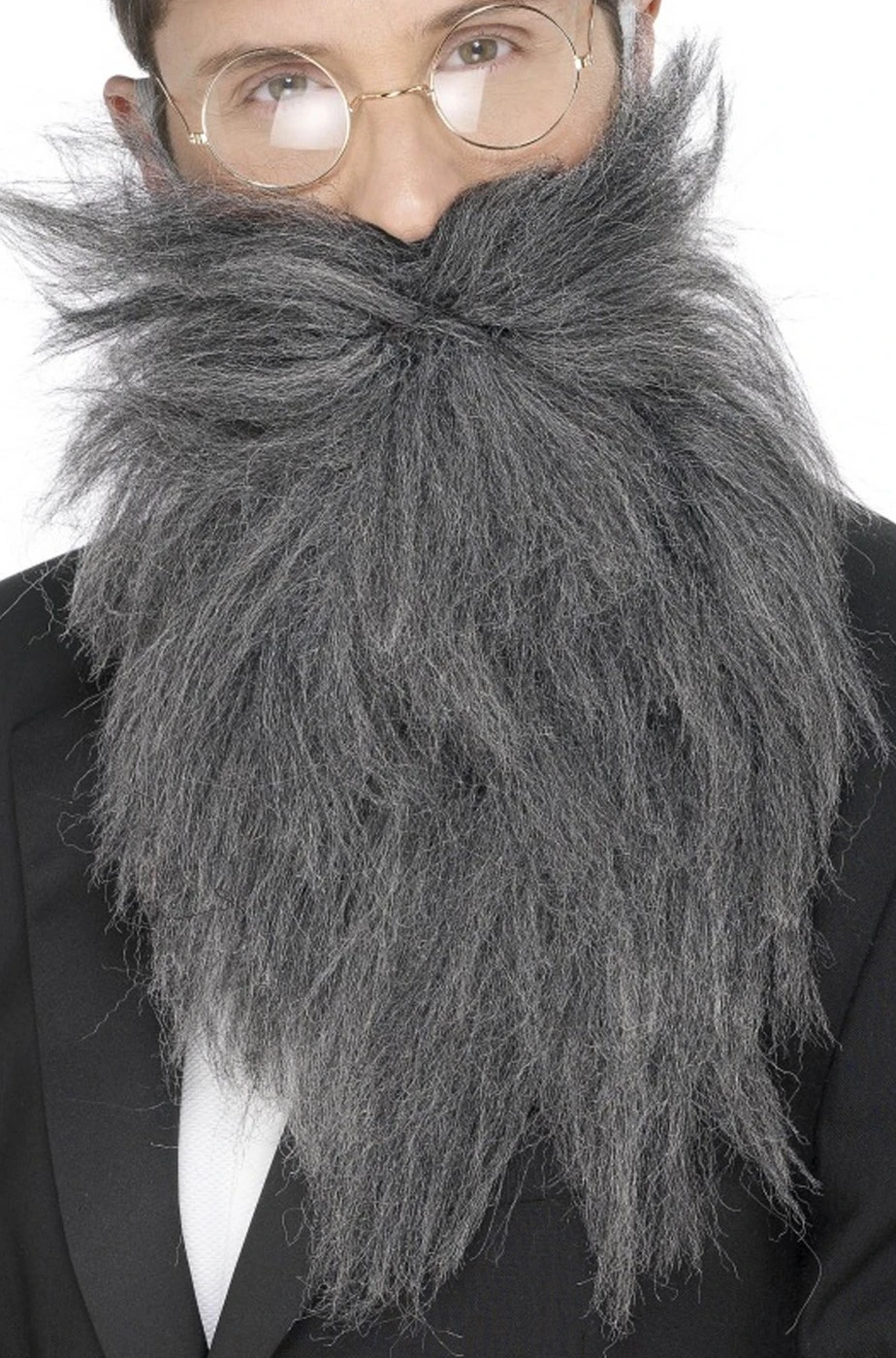 Barba mago grigia. Perfetta per interpretare il classico negromante ma anche un nano dei sette nani, uno gnomo dei boschi, un signore distinto di primi novecento o bell’epoque e vittoriano.