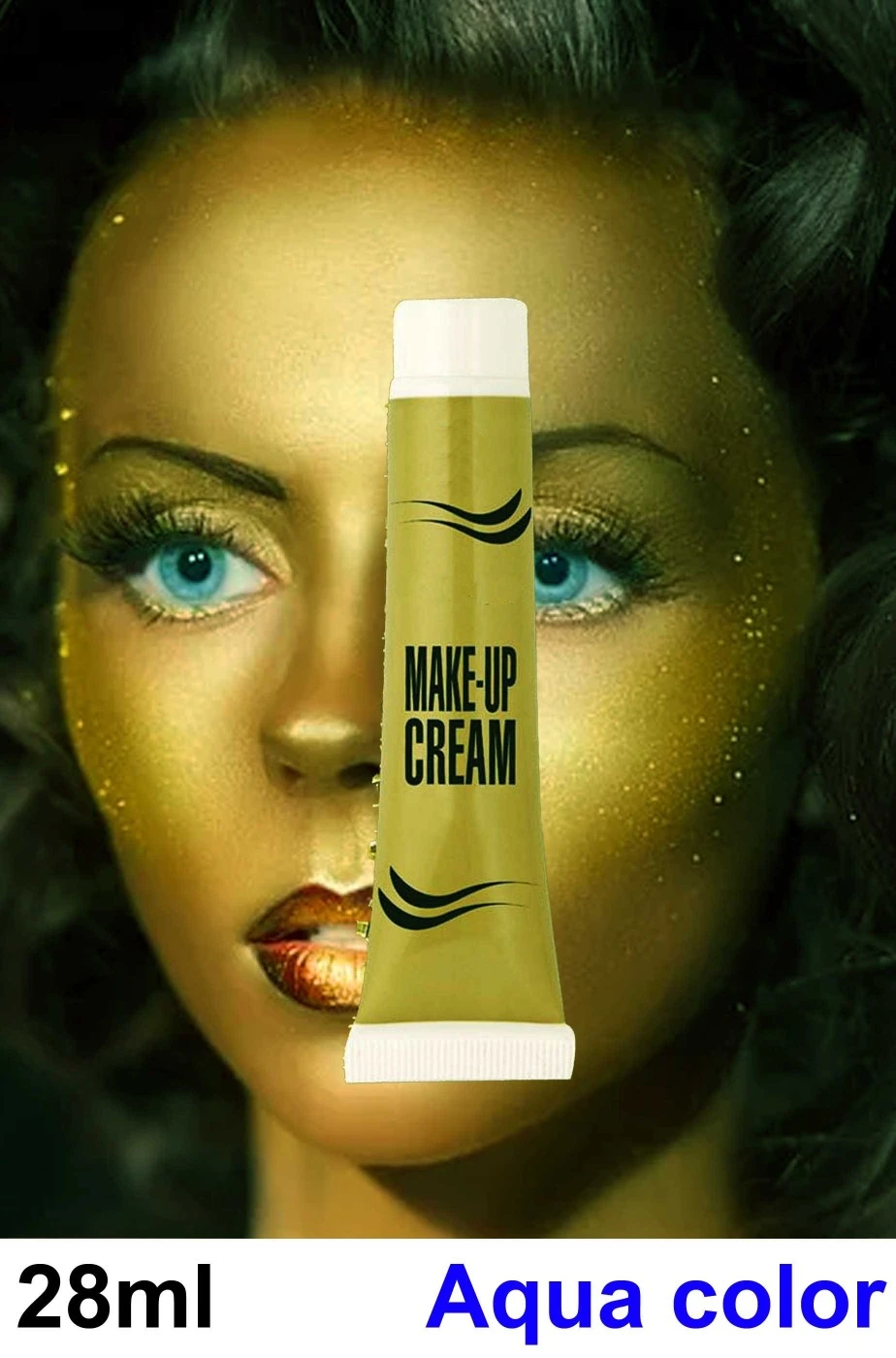 Fondotinta da trucco teatrale color oro antico gia’ diluito in tubetto. Questo fondotinta e’ a base acqua o aqua quindi lo stendi direttamente con le mani o con la spugnetta da trucco per un risultato immediato.