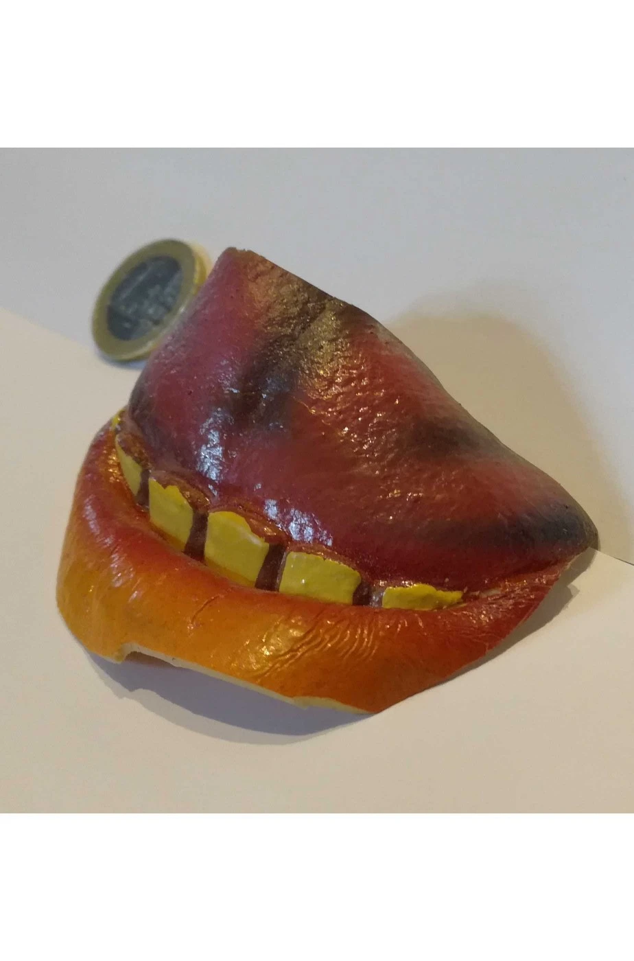 Bocca finta sorridente in lattice con parte di lingua e denti pretruccata per trucco Halloween da applicare su qualsiasi parte del corpo per realizzare un trucco Halloween. Va applicata con lattice liquido non incluso.