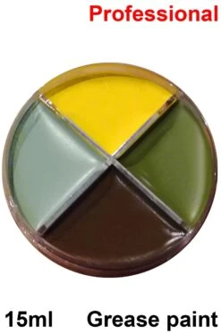 Palette di trucco per viso e corpo a base cera (paraffina) a 4 tonalità di colori verde (fondo), marrone (sfumature), azzurro (sfumature), giallo (finiture)
