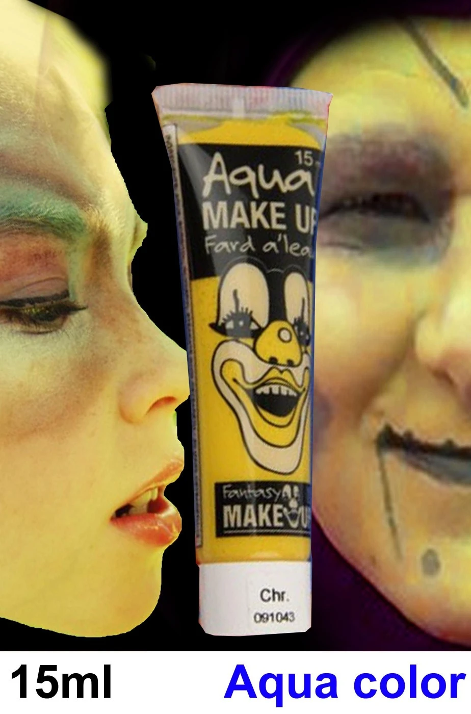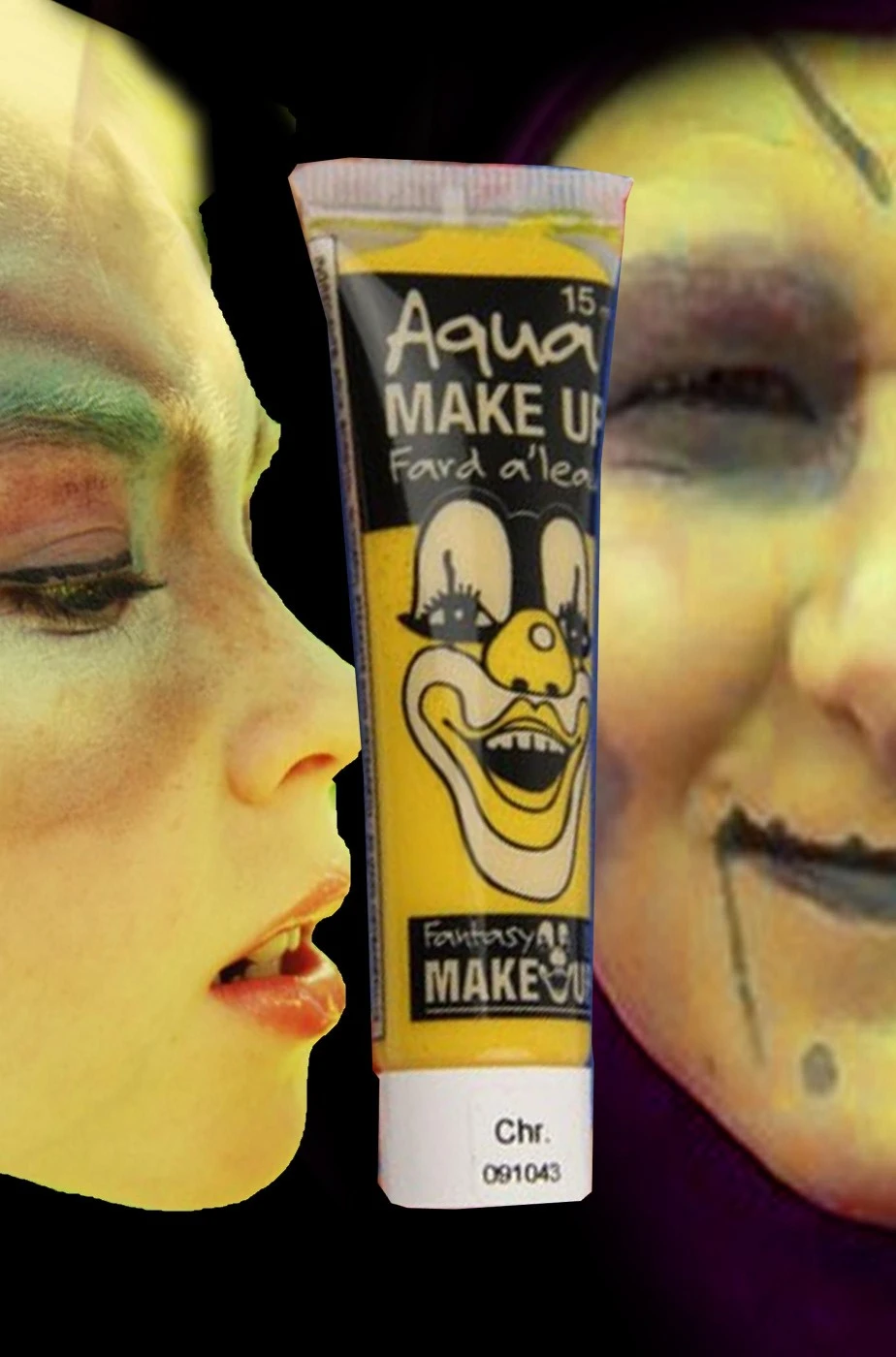 Trucco teatrale o per makeup carnevalesco giallo a base aqua per viso e corpo. Già diluito correttamente in tubetto in formato crema per una pronta applicazione, questo trucco giallo e’ facile da applicare e da rimuovere, ed e’ di ottima riuscita e durata.