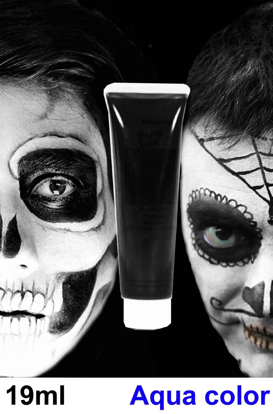 Ideale per realizzare il teschio di zucchero, il famoso Calavera o Calaverita, del Dia de Los Muertos, questo trucco teatrale Halloween nero. Facile da dare perche’ gia’ diluito e quindi pronto all’uso, si stende facilmente con il pennellino da trucco per lavori di precisione oppure con le dita per fondi e sfumature o con la spugnetta da makeup.