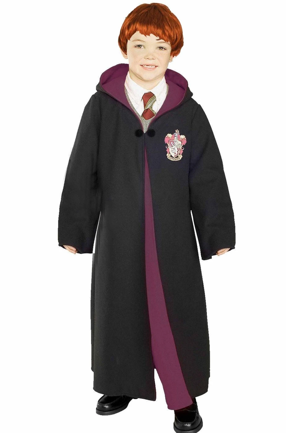 La tunica ufficiale di Grifondoro, la casata più famosa della scuola di magia di Hogwarts. Il vero vestito di carnevale di Harry Potter, di Hermione Granger, di Ron Weasley e dei suoi fratelli e per qualsiasi allievo della casada di Cedric Gryffindor. Include la tunica aperta in tessuto spesso con cappuccio e logo ricamato di Grifondoro (IN INGLESE Griffyndor) e fermaglio.