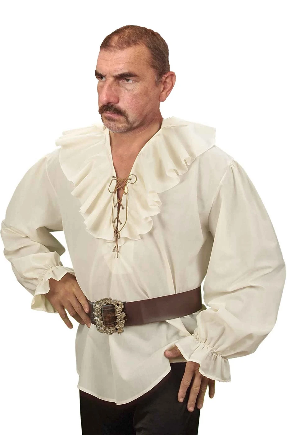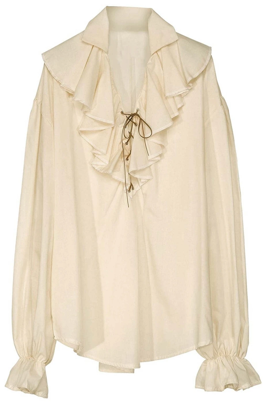Per partire nella creazione del vestito da pirata fai da te o per realizzare un costume di carnevale da oste medievale o per un cosplay ambientato nelle epoche antiche, dal pittore del rinascimento al cavaliere del 700, questa e’ davvero una bellissima camicia con le grandi maniche a sbuffo e la ruche. Il colore e’ un beige chiarissimo che la rende molto realistica ed anche per cosplay di personaggi fantasy.